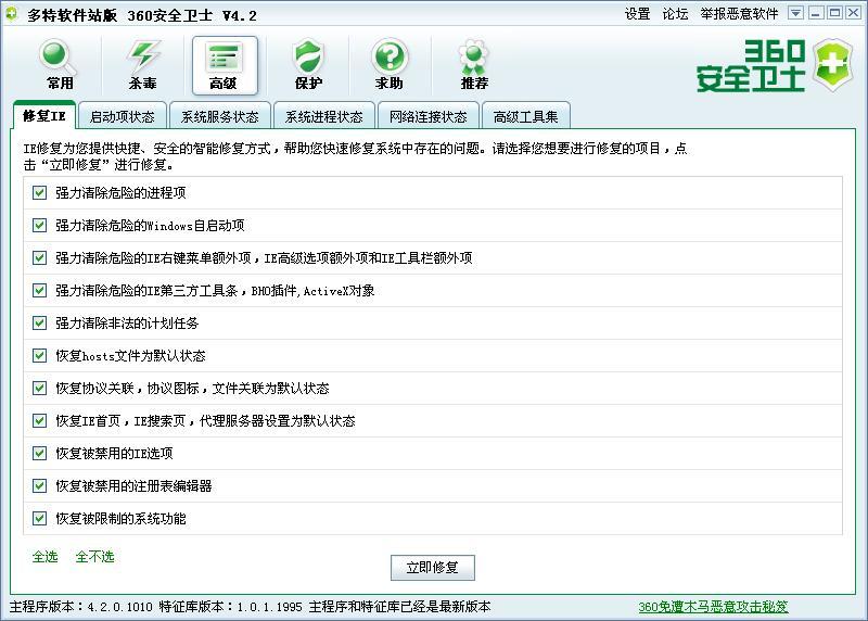 2.然后或用360安全卫士的图上这一项修复一下IE。
