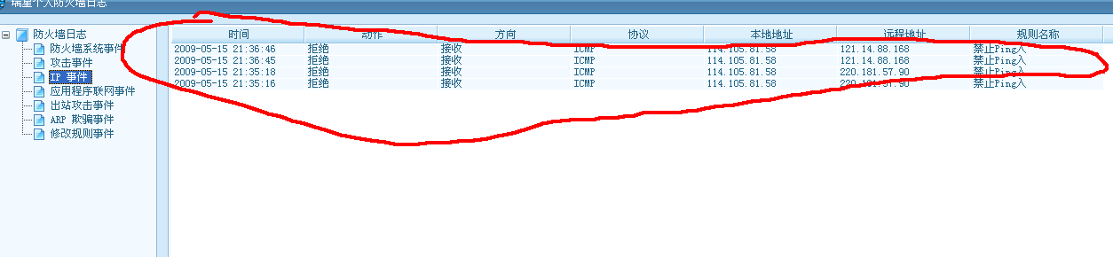 这表示有其他机器ping你的机器,而防火墙阻止了这个通信连接