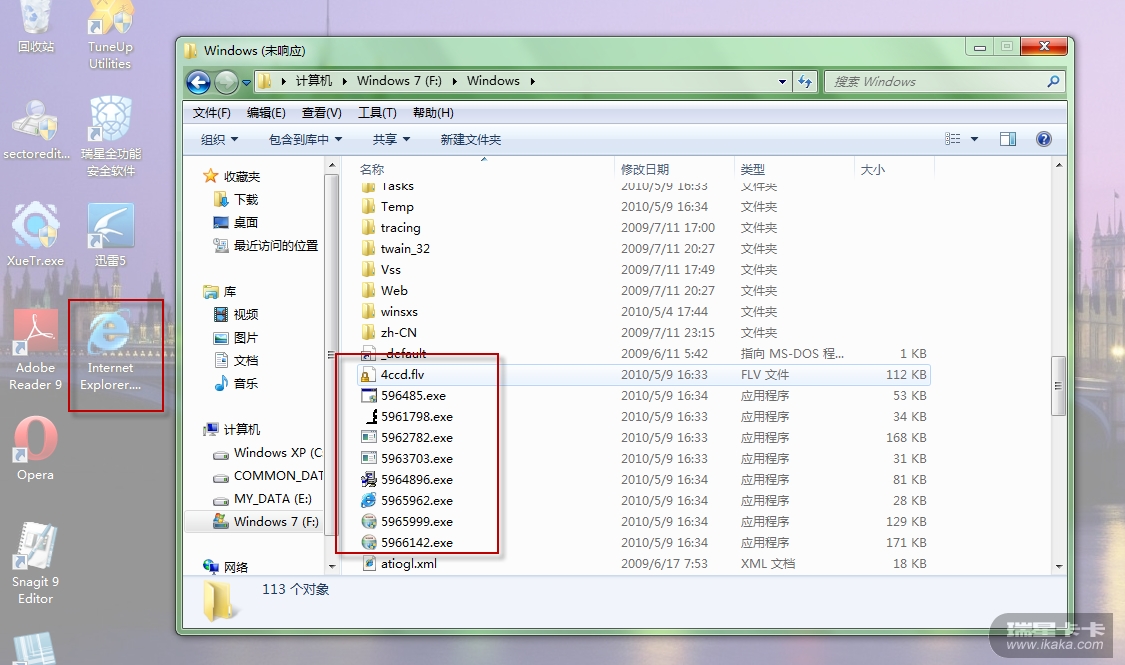 病毒运行后、重启系统前的的截图