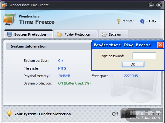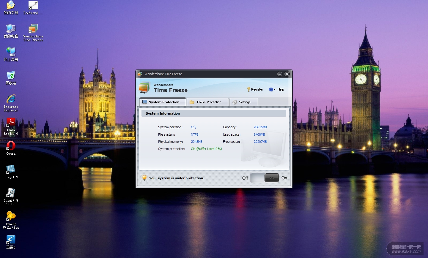 1、Wondershare Time Freeze的“系统分区保护”状态。