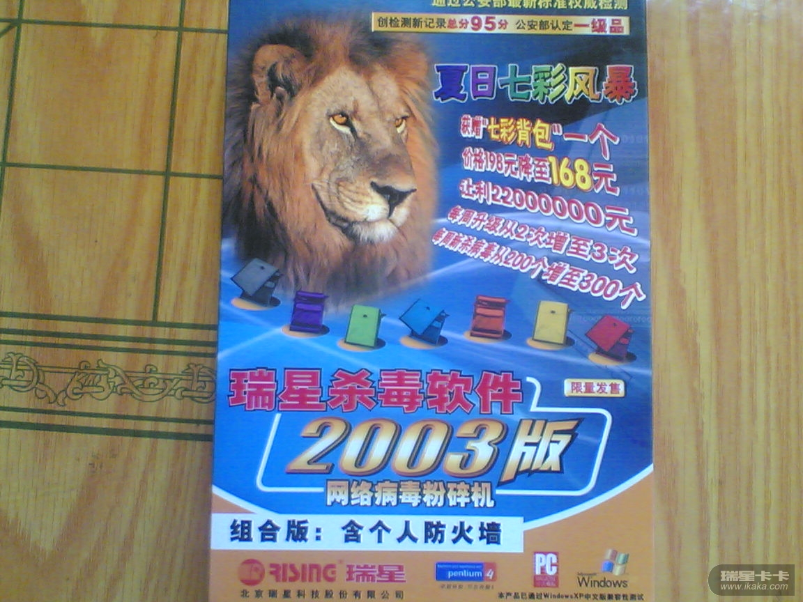第一台电脑。。那时候我对电脑什么都不懂,问装机师傅哪个杀毒软件最好,他说了一个国外品牌,就给我装上了。记得那年有种叫冲击波的电脑病毒很流行,为了不让电脑中毒,天天赶着我的56K小猫去升级病毒库。结果,电脑频繁重启,中招了。。这让我很是意外,为什么装了杀毒软件,更新了病毒库,还是会中招?后来请教了高手才知道,盖茨的Windows是要打补丁的,杀毒软件是要用国产的,可能是病毒库更适合国情吧。。系统重装后,我在网上下了几款当时国内主流的杀毒软件,最后被瑞星的小狮子吸引住了,它就住进了我的电脑里,算是我和瑞星的第一次邂逅吧。。由于是D版的,一个ID同一版本是有升级次数限制的,所以每天的升级又成了一件麻烦事,最终我还是做出了一个决定---买套正版的瑞星回家,我也就有了第一套正版的杀毒软件。之后的几年,我陆续申请到了瑞星俱乐部会员资格,参加了反垃圾邮件软件,各年年度的瑞星杀毒软件公测,同时坚持给瑞星上报病毒。。付出就有回报,我始终坚信!在这些年中,瑞星也给予了大小产品周边、数码产品等奖励, 说明瑞星对用户体验是非常重视的。最后,衷心祝愿瑞星20岁生日快乐!