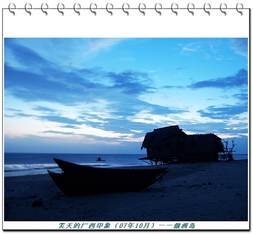 海 滩的另一侧,那栋为拍摄电视剧而特意搭建的小竹楼向着海的方向倾斜着,似乎随时都会散架(可至少它经受住了我们来之前的那次台风的影响)。竹楼旁一艘小舢 板因台风而闲置,光亮的船身像是刚上了桐油,楼与船在夕阳的余晖里成就了一副完美的剪影。竹楼后面的银白色沙滩是宿营者的天堂,五颜六色的帐篷都已经支 起,主人们正三三两两的坐在旁边欣赏落日,憧憬着头枕波涛的甜美梦乡。