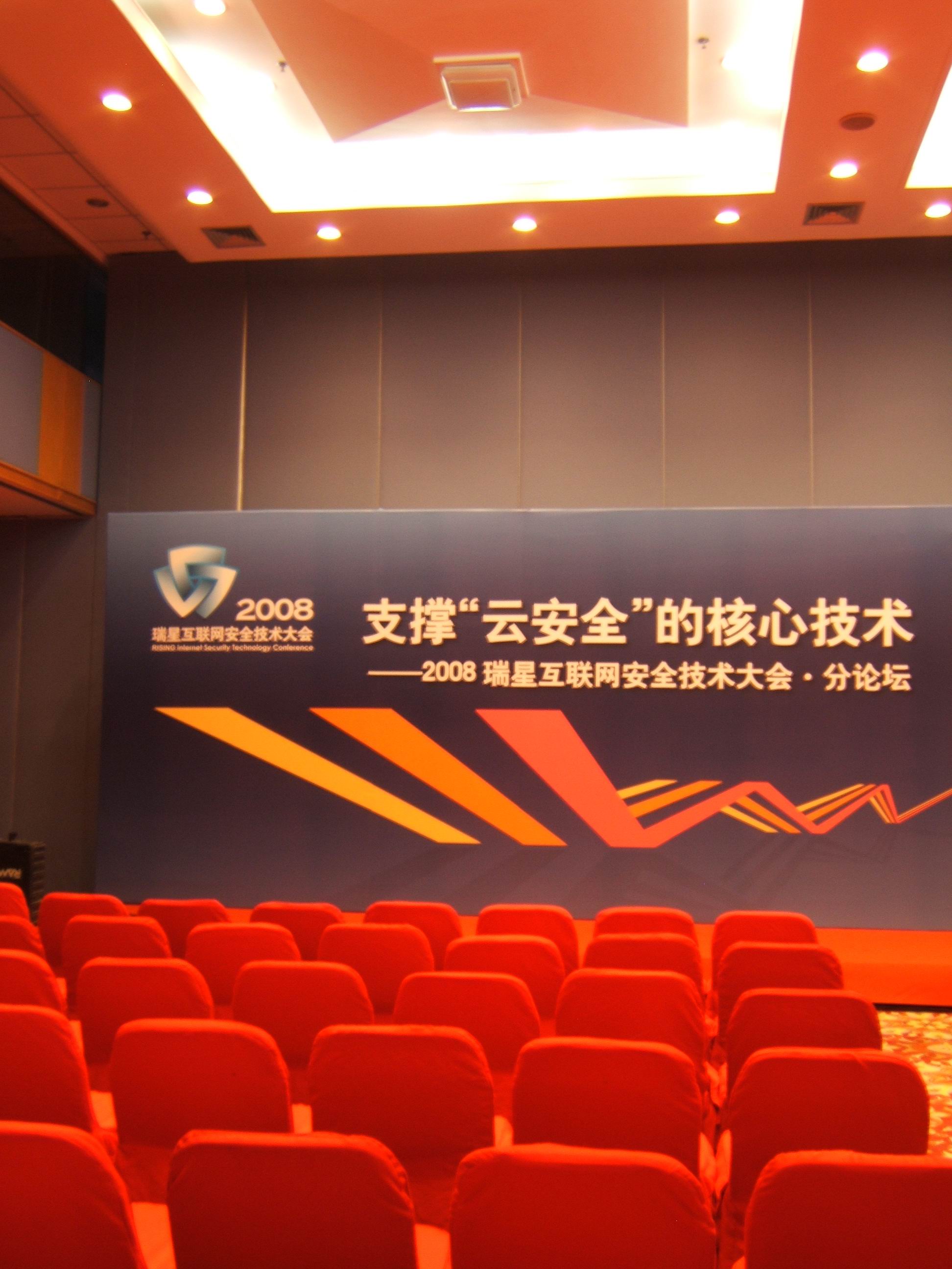 这是主会场,到会的500余人就是在这里听取互联网安全状况报告及安全厂商的应对方案。
