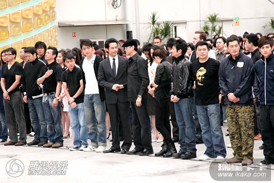 到场向艺员派发黑色手带。踏入二时二十八分时,众人默哀的时候,便开始下着毛毛雨,场面更悲惨,