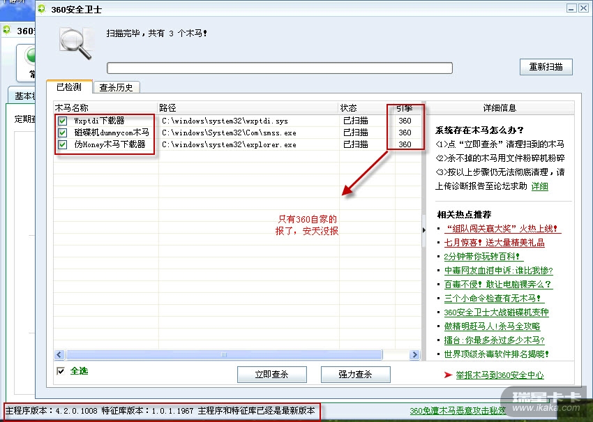 其实就是将记事本程序复制到上述目录,并且重命名让我们强大的360,扫描下C盘.....