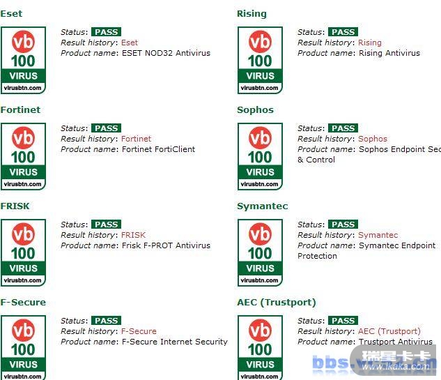 最新VB100% 测试200808~~瑞星过了