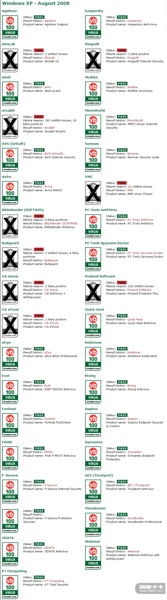 回复:2008年8月VB100杀毒认证结果已出 瑞星首次入围