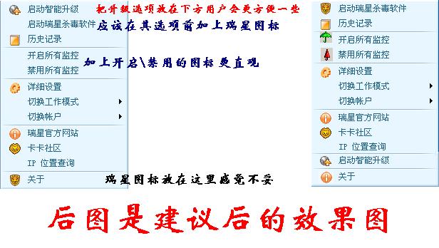 小绿伞的右键菜单有些不方便!建议更改一下,上图说明!