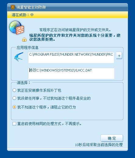 还有个疑问,为什么主动防御提示迅雷这个常用软件?提示也算了,为什么是中的潜在威胁呢?迅雷的威胁很高吗?工程师讲解一下。