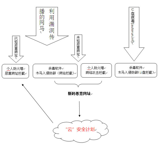 发布以来,瑞星提出了“云”安全计划,旨在通过卡卡庞大的用户团体为瑞星在全互联网捉马,但这仍然是滞后的,只有当用户中毒了,且病毒样本被传到瑞星服务器,瑞星工程师分析并且升级之后才能给大家共享,仍摆脱不了中毒-上传样本-升级查杀的落后体系,因为这需要至少一个用户中毒后才能给大家共享“云”安全成果;瑞星