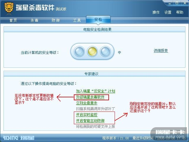 [使用交流] 瑞星09,测试报告(更新于2008-09-10 20:10 第十楼)