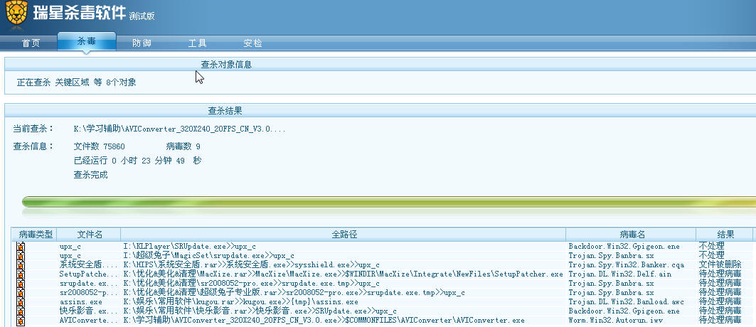 这里并不是瑞星对狙剑没有任何防御,而是我一路绿灯让狙剑可以在当前系统可以正常运行。