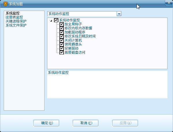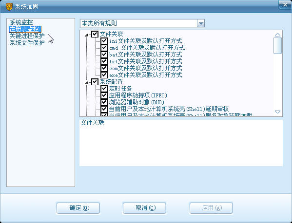 感觉这项有必要列出瑞星自我保护了哪些东东,若用户感觉不足可以自己再进行扩充。