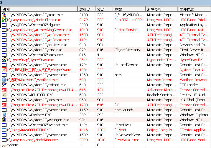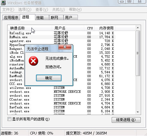 尝试结束了瑞星的所有进程,然后进程列表结果如下: