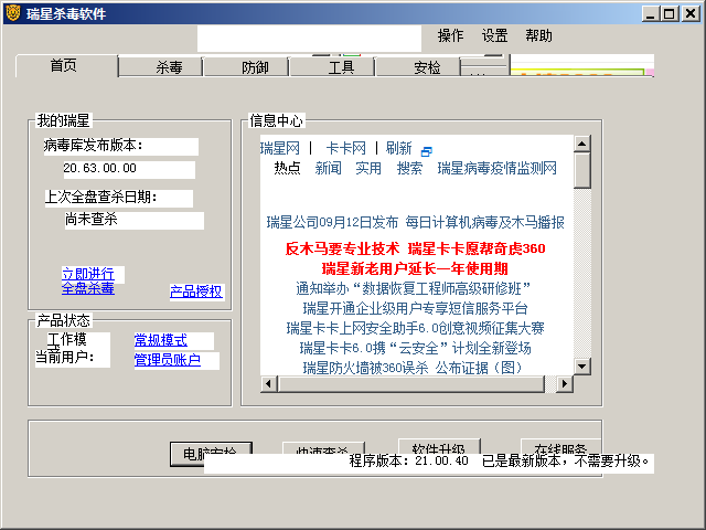 回复: 这就是Rising2009?我是第一次用瑞星,这也太让我失望了```