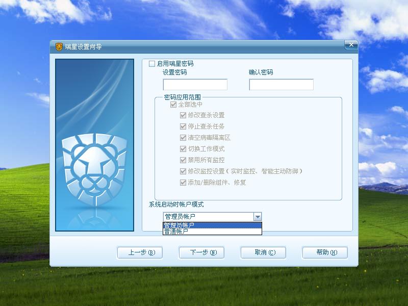 当前用户:当选择普通用户的时候,用户无法对瑞星的某些设置进行更改