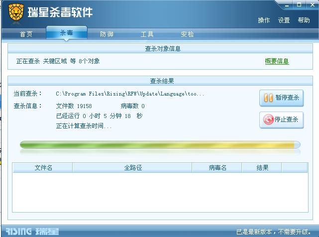 杀毒明显感觉卡,且时间计算一直未知。内存占有太多。