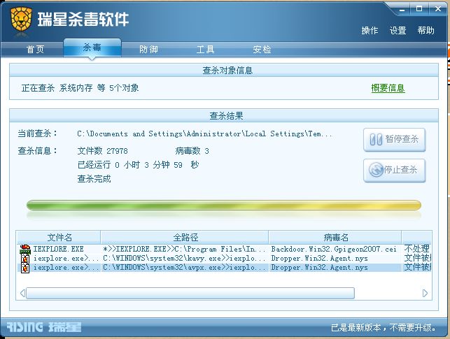 瑞星软件版本:20.64.32.00