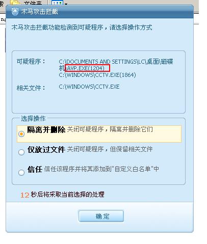 运行病毒样本,木马攻击拦截有提示。阻止并隔离后,再次运行样本。瑞星无任何提示,任务管理器里却多了avp.exe进程。虽然系统到目前没发生异常,但这个进程却让人怕怕的。
