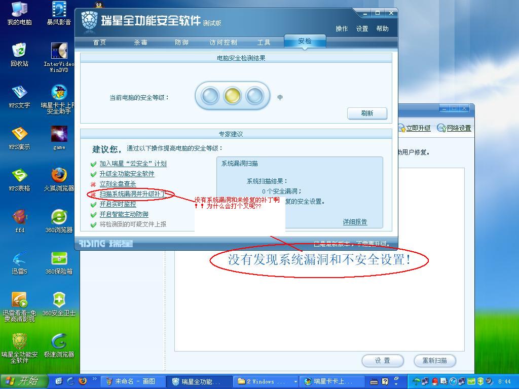 4. 确认没有漏洞和不安全设置时,修复瑞星。