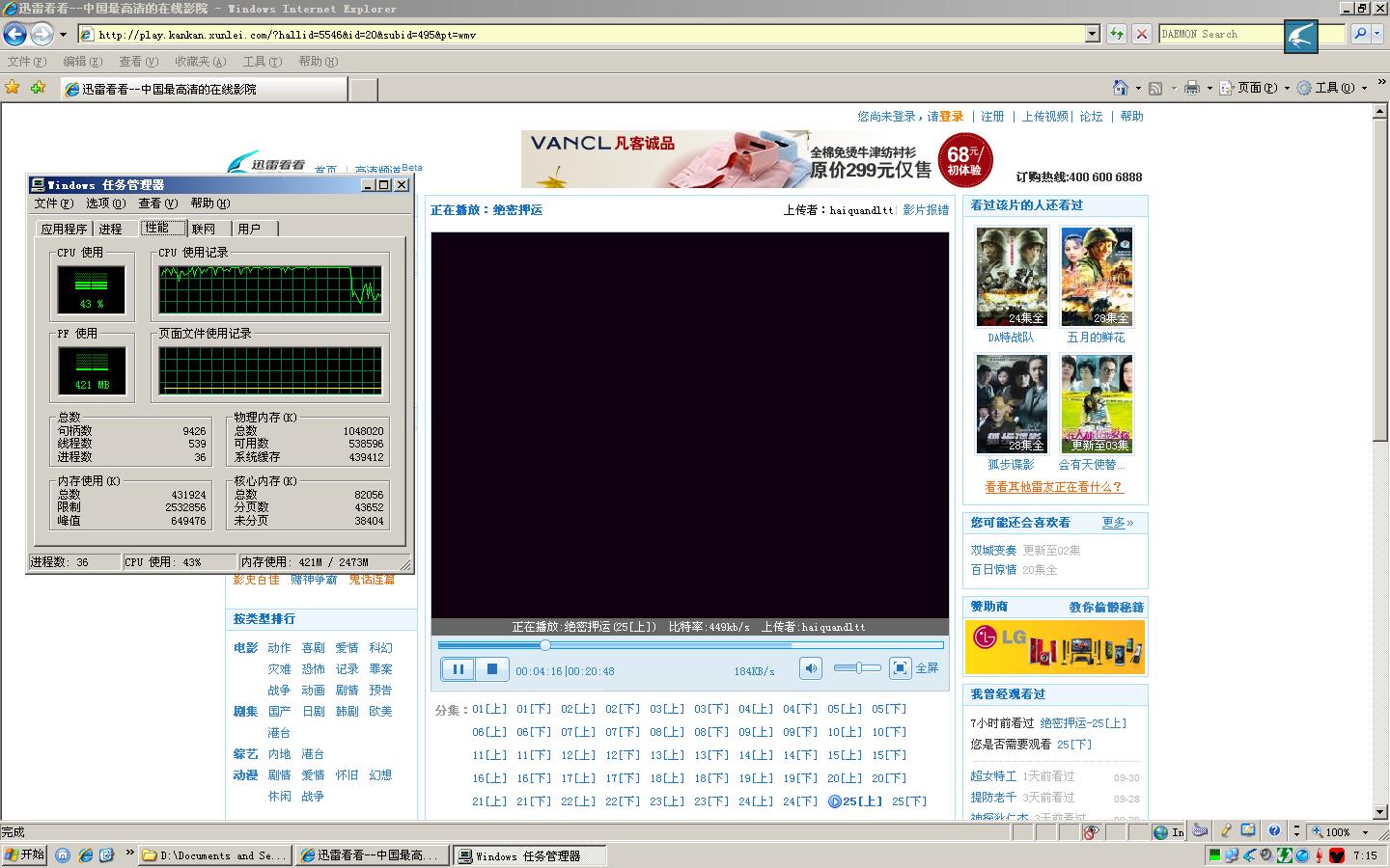 问题现象:用迅雷看看看电影,发现老是停顿。