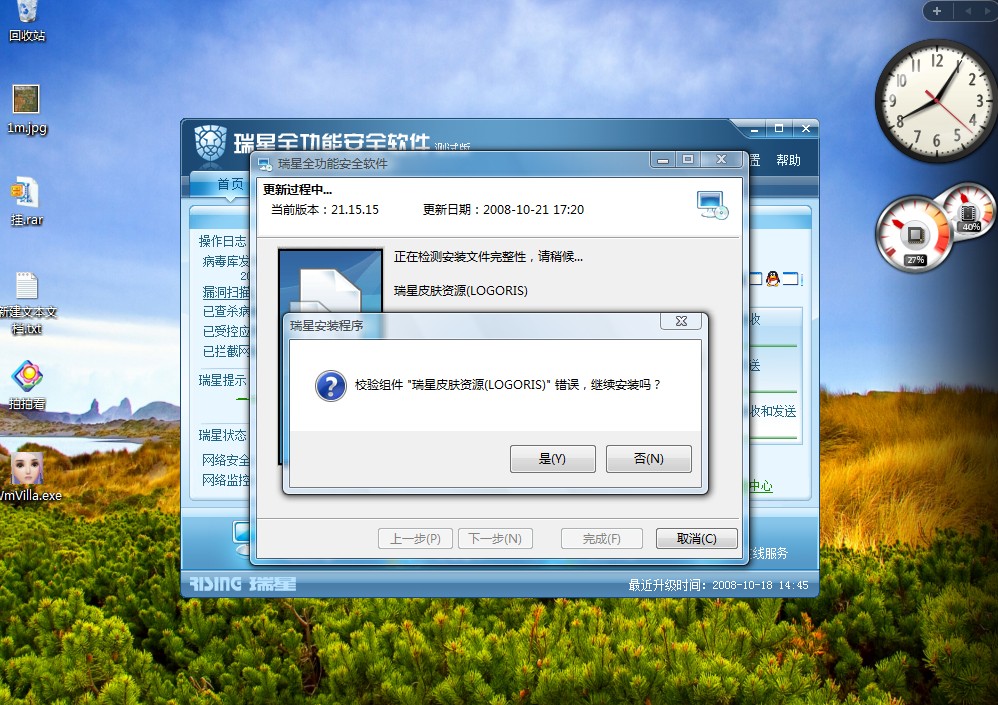 楼主的瑞星是什么时候下载的,最近安装包已做更新,请重新下载安装测试。