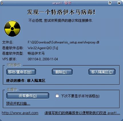 avast报告瑞星全功能安全软件2009体验版程序内rfwproxy.dll是特洛伊木马