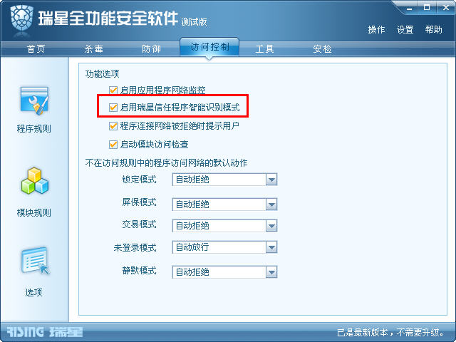 瑞星全功能安全软件2009测试版 不管什么程序访问网络都自动放行 根本没有选择的余地