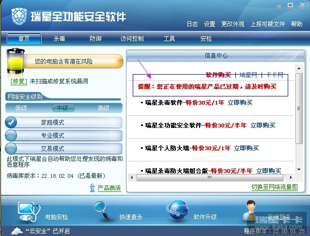 瑞星怎么说我产品过期呢