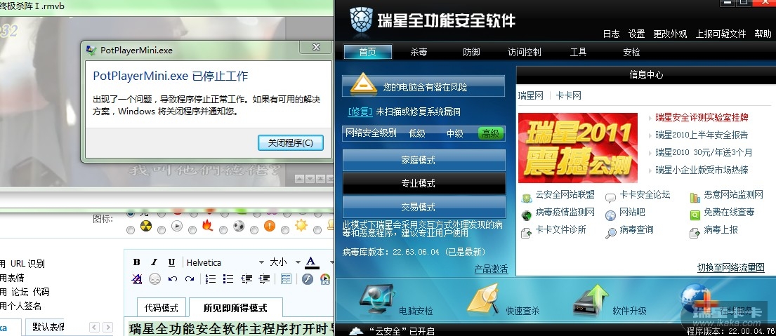 [求助] 瑞星全功能安全软件主程序打开时导致PotPlayer崩溃