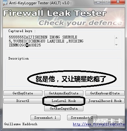 几乎涵盖了所有的键盘记录方式,但瑞星之成功的拦截了1 2 3 和第7项,4 5 6 拦截失败!!!