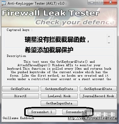此程序共提供了9项测试,其中7项 键盘记录测试 两项 截屏测试!!!