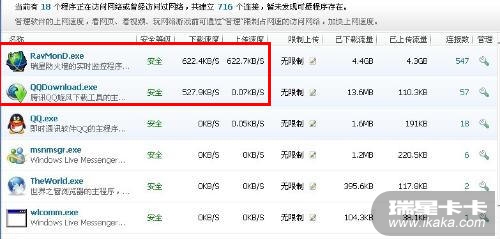 开迅雷下载个较大的文件,然后你看看那个RavMonD.exe的上传,下载的速度和流量是不是和迅雷的很相近。