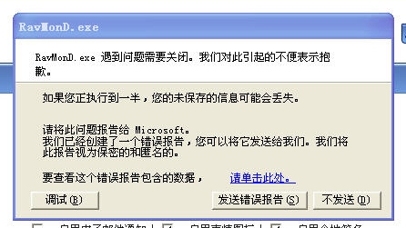 2.经常出现“ravmond.exe出现错误需要关闭”,接着就是“内存不能为written.”。