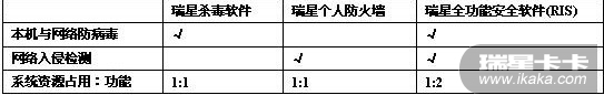 答:瑞星全功能安全软件(RIS)产品是全新一代的互联网安全产品,整合了本机与网络防病毒、网络入侵检测与拦截的双重功能,且更节省系统资源。您可参看下表示意了解RIS产品传统杀毒软件产品的功能与资源占用情况: