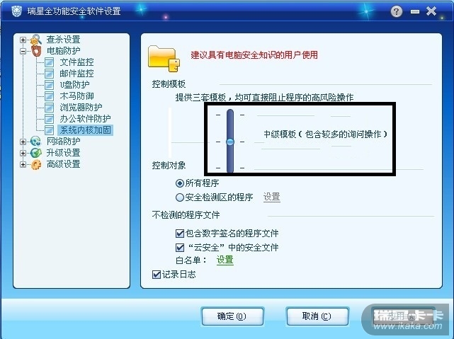 若瑞星也采用这样的策略,不就解决了 用户将系统加固设为高,弹窗太多的弊端,若默认设为初级模板,弹窗是少了,安全性不就降下来了!!!