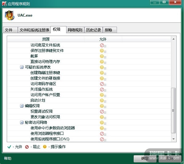 卡巴斯基的工作逻辑 ,通过启发分租,通过设置窗口可以看出90%的程序都被卡巴划入信任组,就是有程序不确定也被划入了低威胁组,这样的策略几乎无懈可击,就是暂时划入信任或低威胁组的程序,卡巴启发一直在后台跟踪,直到将程序划入相应的组为止!!!通过卡巴的云 更新这些程序划入哪个组的规则,也可以加快程序启动时被拦截的时间,也可以防止程序被误分租带来的隐患!!!