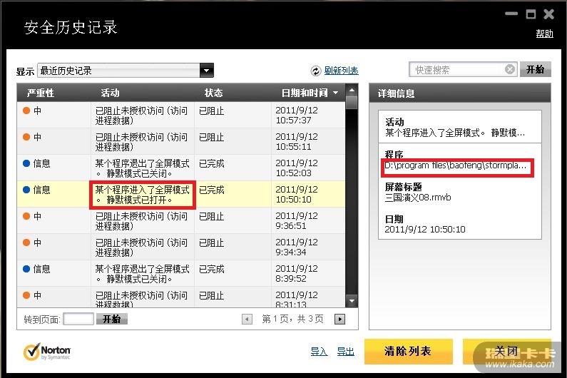 诺顿使用了 检测 全屏 的功能,若 检测到 有软件 全屏 则 自动进入 静默模式!!!