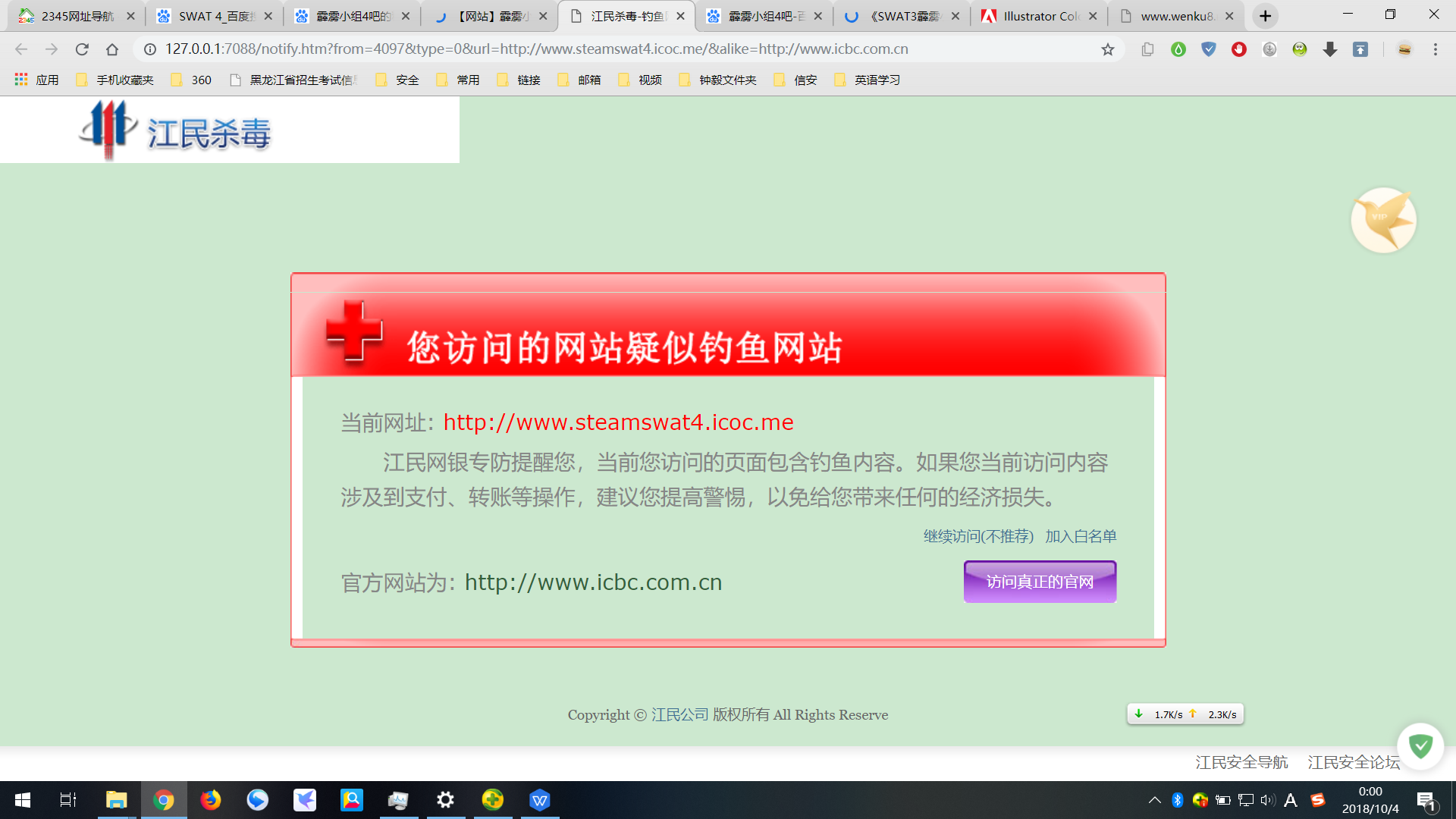 瑞星ESM(瑞星下一代网络版杀毒软件)、瑞星个人防火墙 也可以拦截恶意网址和钓鱼网址