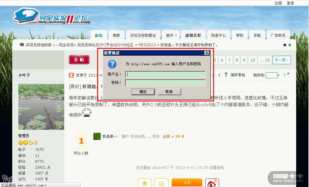 完全实况论坛里的一个帖子打开怎么出现“需要验证”对话框???