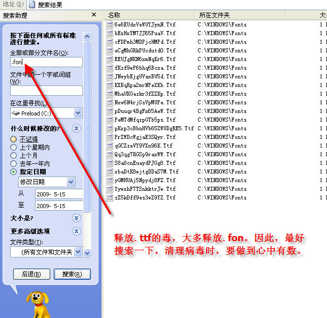 其实,只要知道中毒的具体日期,摸敌情这一步做起来并不算太难,也不需要什么高级工具。用系统的搜索工具,多数情况下即可解决问题。
