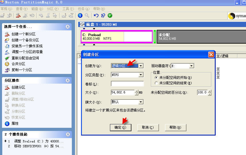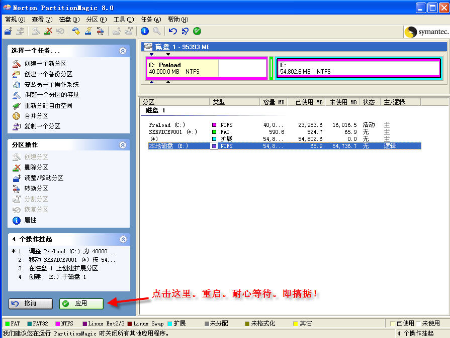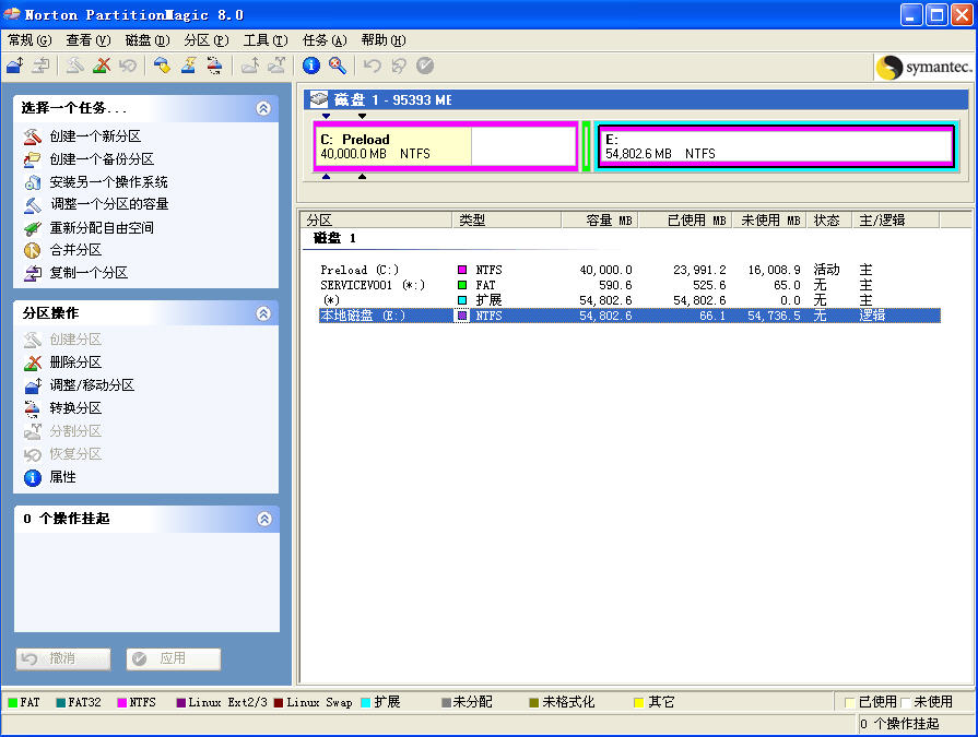 我就想了想,把它划为了FAT32的E盘,因为我的C盘是FAT32的,我想试试这样能不能合并分区,结果合并是又出错了…………