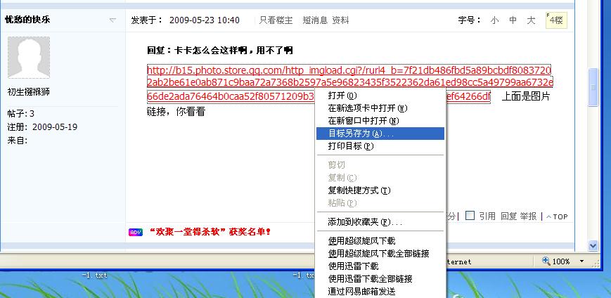 比如例子的楼主提供了图片的下载链接,查看的方法就是鼠标移动到链接上方,然后右键——目标另存为...