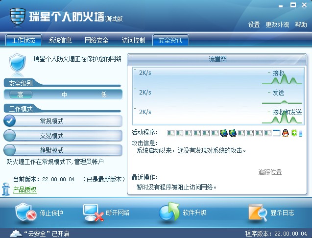 在默认情况下装好的瑞星2010版杀毒软件和防火墙。