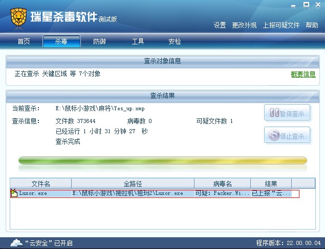 今天进行全盘杀毒,查出可疑文件为祖玛小游戏,已经上报如下图所示