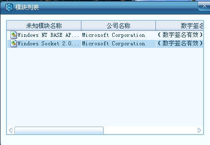 然后点下模块列表,会检测程序数字签名是否有效!