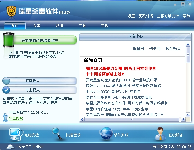 瑞星杀毒软件2010感觉改进很大!