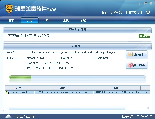 瑞星18分钟扫描2W+文件(中等程度扫描)