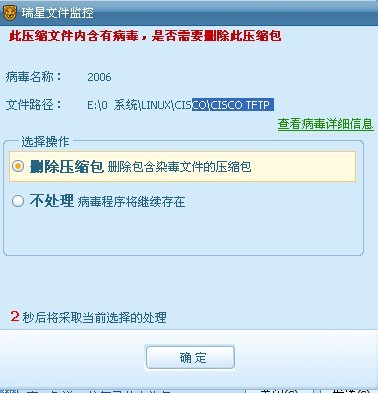 当从瑞星的病毒隔离区里恢复出老病毒,然后在没有运行的状态下,再次查杀时发现提示杀毒失败,而且没有删除文件的功能。
