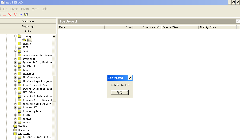 用IceSword强制删除瑞星2010安装目录————————失败。还行,能看护住自己的目录。